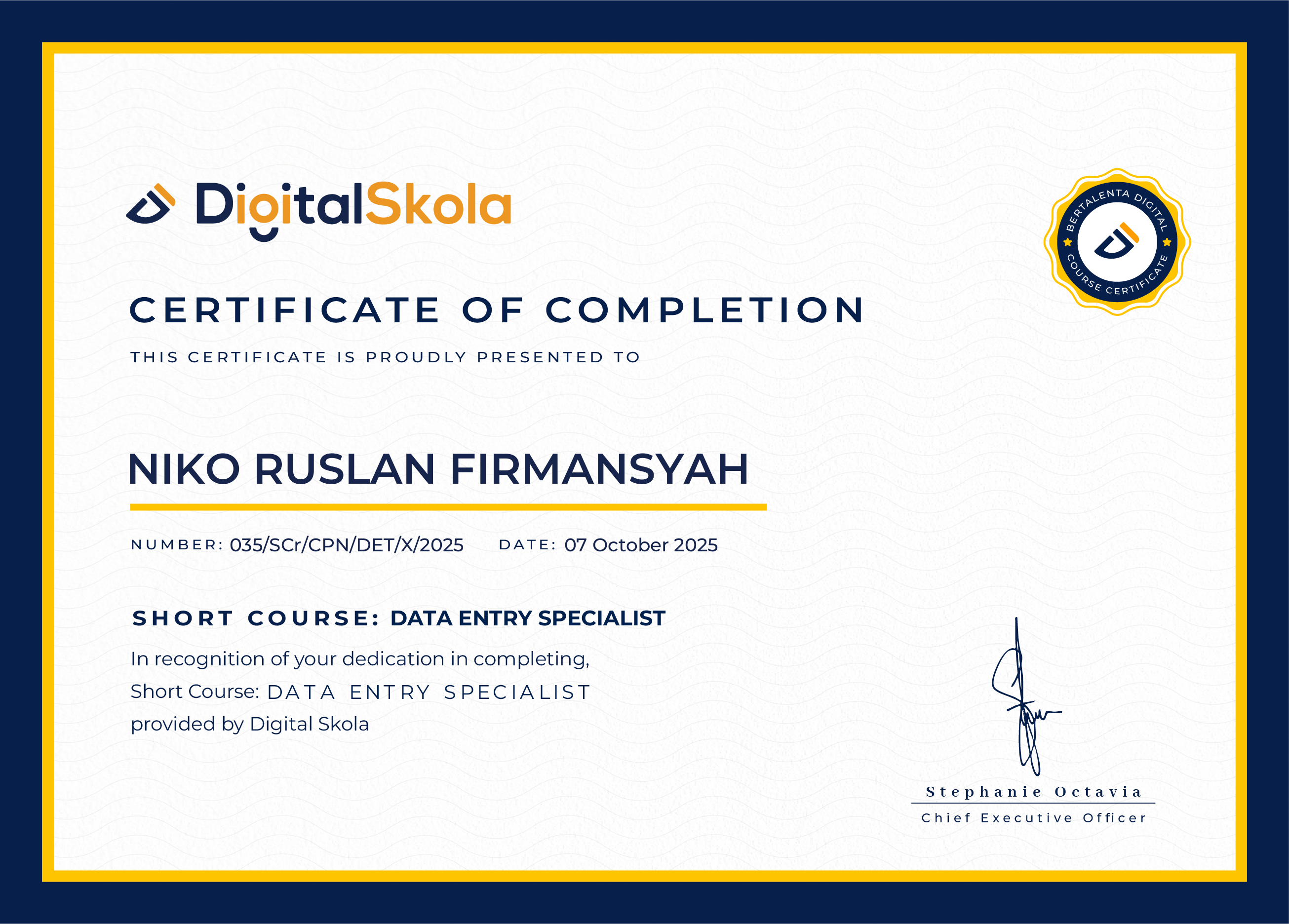 Saya adalah lulusan SMK dengan pengalaman magang sebagai Teknisi Kendaraan Ringan serta pelatihan di bidang digital dan administrasi. Saya terbiasa bekerja secara teliti, disiplin, dan mengikuti prosedur. Dengan bekal keterampilan seperti Microsoft Office, WordPress, dan Digital Marketing, saya bisa berkontribusi di berbagai bidang pekerjaan, termasuk administrasi, data entry, dan operasional digital. Saya terbuka untuk pekerjaan yang relevan dan bisa beradaptasi dengan berbagai kebutuhan yang ada.
