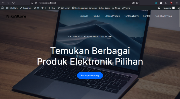 Website NikoStore berhasil online dan berfungsi sebagai toko online berbasis affiliate marketing. Produk dapat langsung diklik menuju platform e-commerce tujuan. Website ini tampil responsif di berbagai perangkat, serta sistem kontak sudah terintegrasi untuk langsung mengirimkan pesan ke email admin.